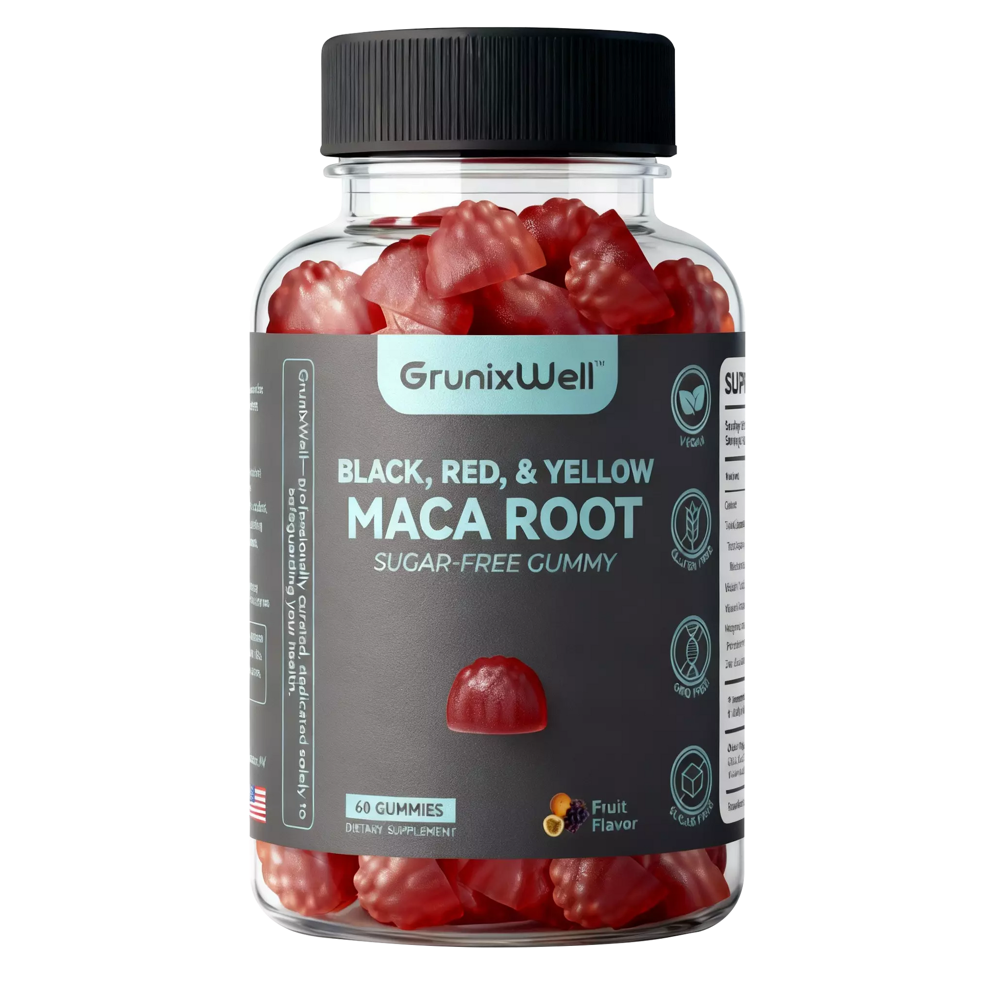 GrunixWell Maca Root Gummies feature a scientifically balanced blend of black, red, and yellow maca root extracts to help boost energy, enhance stamina, balance hormones, and improve overall vitality.